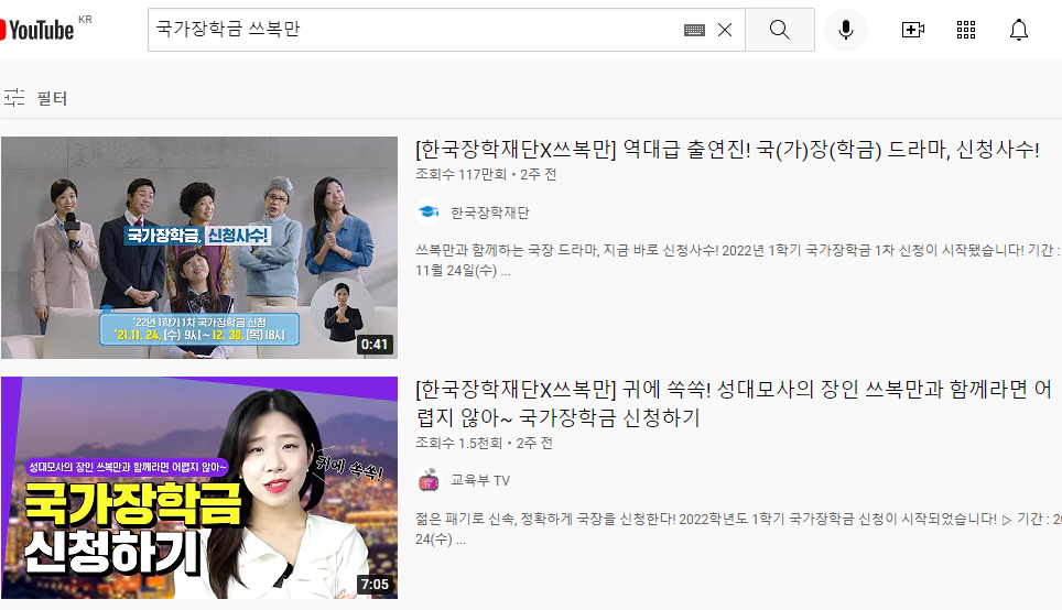 [2022년 1학기 국가장학금 신청 안내] 교육부와 한국장학재단은 대학생의 등록금 부담 완화를 위해 국가장학금을 지원하고 있습니다. * 대학생 가구의 경제적 여건에 따라 연간 350만 원~등록금 전액까지 차등 지원 * 2020년 기준 대학생 104만 명이 국가장학금 수혜 입학할 대학이 확정되지 않은 예비대학생도 국가장학금을 신청할 수 있으니, 지금 바로 신청하시길 바랍니다. * 고3, 재수생 등 입학예정자도 ‘학교등록여부’를 미선택하여 신청 가능 ● 국가장학금 신청기간: 11.24.(수)~12.30.(목) 18시 * 신청기간 내 24시간 신청 가능(마감일 제외) ● 서류제출 및 가구원 동의 기간: 11.24.(수)~’22.1.4.(화) 18시 * 우선감면, 타 장학금 선발 등을 위해 ’21.12.10.(금) 18시 이전 완료 권장 ● 신청방법: 한국장학재단 모바일 앱 및 누리집에 로그인 후 신청(학생 및 가구원의 전자서명수단 준비) * 한국장학재단 모바일 앱: mo.kosaf.go.kr/apps * 한국장학재단 누리집: www.kosaf.go.kr ☎ 신청문의: 한국장학재단 고객센터 1599-2000