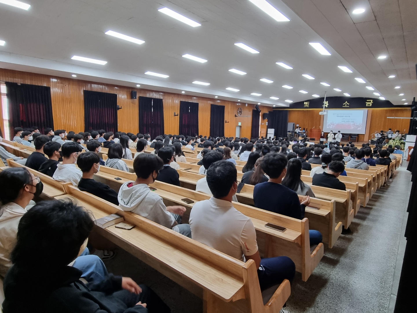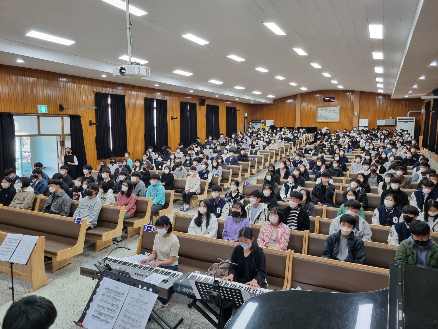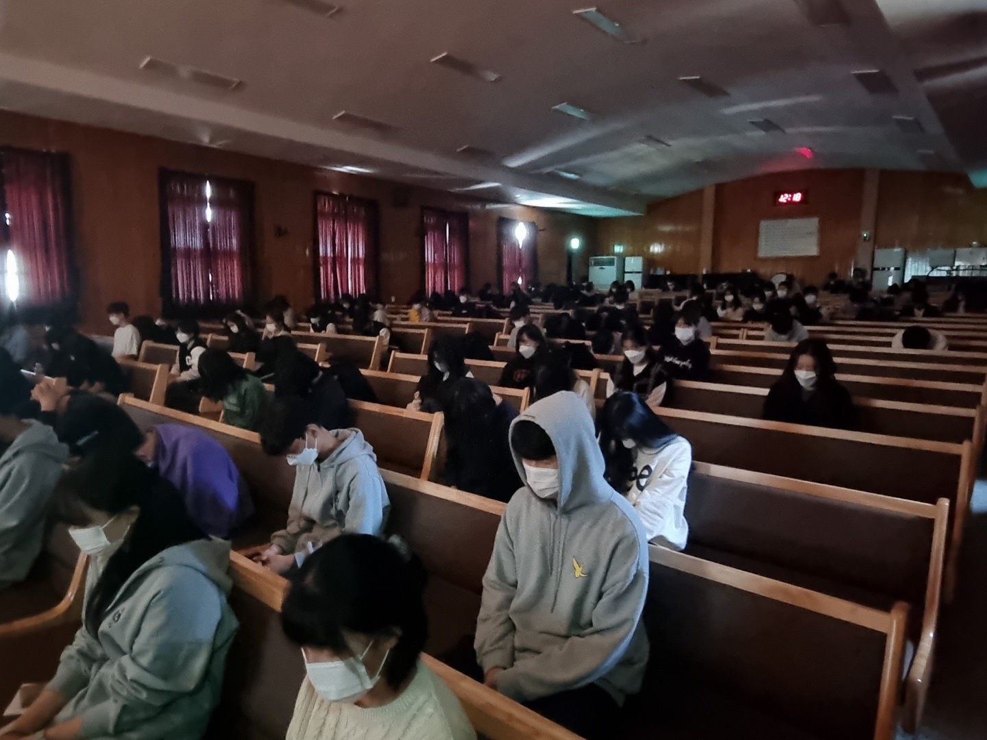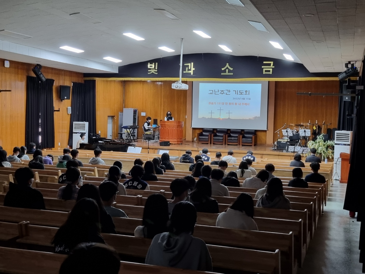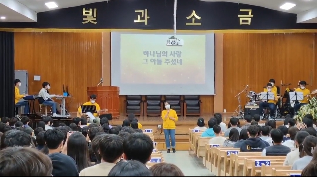 2022년 4월13일(수)~4월15일(금) 3일 동안 점심시간에 고난주간 기도회가 있었습니다. 예수님이 우리의 죄를 대신해 십자가에 못 박혀 죽으신 죽음의 고초와 사랑을 깊이 묵상하며 기도하는 시간을 가졌습니다. 15일(금) 8교시에는 전교생이 강당에 모여 부활절 예배를 드렸습니다. 부활하신 예수님께 뜨거운 찬양을 올려드리고, 예배하는 학생들의 모습이 참 인상적이었습니다. 오종신 목사님께서 '어둔 밤 지나고 동튼다(창 28장 10~19절)'라는 제목으로 말씀을 전해주셨고, 교사찬양팀의 특송으로 예수님의 부활을 축하하고 기념하는 시간을 보냈습니다.
